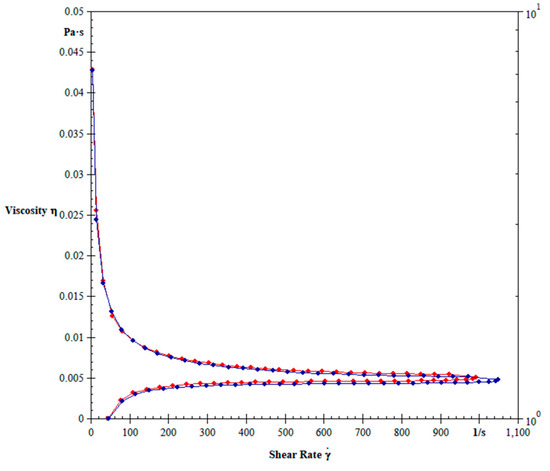 Whole blood with EDTA from each dog was subjected to hemorheology analysis to obtain data on blood viscosity. A compact modular rheometer, Anton-Paar® Cone-Plate model–MCR 102 (Anton Paar® GmbH, Ostfildern, Germany), was used, and the graphs were obtained using the Rheoplus software. For hemorheology analysis, 750 μL of whole blood with EDTA was used, maintaining a temperature of 37 °C in the plate with 60 flow measurement points [17].