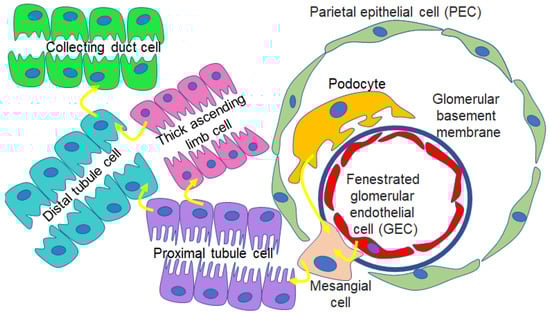 | Cell Type | Podocytes | Mesangial Cells | Glomerular Endothelial Cells | Proximal Tubule Cells | Principal Cells |