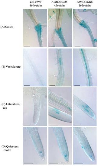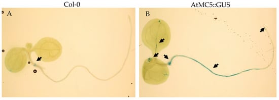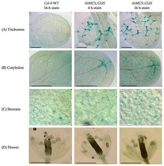 3.1. Expression of AtMC5::GUS in A. thaliana Tissues