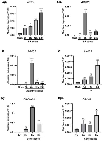 4.2. AtMC5 Expression Is Inducible by ER Stress and Oxidative Stress