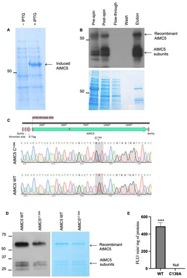 3.3. Purification of Recombinant AtMC5 Expressed in E. coli
