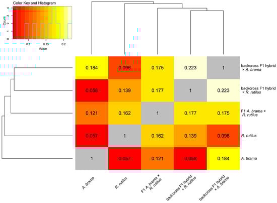 - Konopinski, M.K.; Amirowicz, A. Genetic composition of a population of natural common bream Abramis brama x roach Rutilus rutilus hybrids and their morphological characteristics in comparison with parent species. J. Fish Biol. 2018, 92, 365–385. [Google Scholar] [CrossRef]