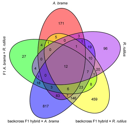 - Stolbunova, V.V.; Pavlova, V.V.; Kodukhova, Y.V. Asymmetric hybridization of roach Rutilus rutilus and common bream Abramis brama in controlled reverse crosses: Genetic and morphological patterns. Biosyst. Divers. 2020, 28, 376–383. [Google Scholar] [CrossRef]