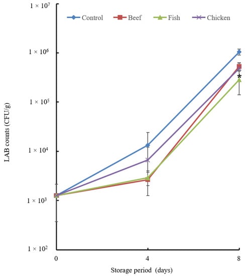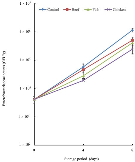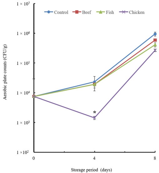 2.8. Preservative Effects of Beef, Fish and Chicken Hydrolysates