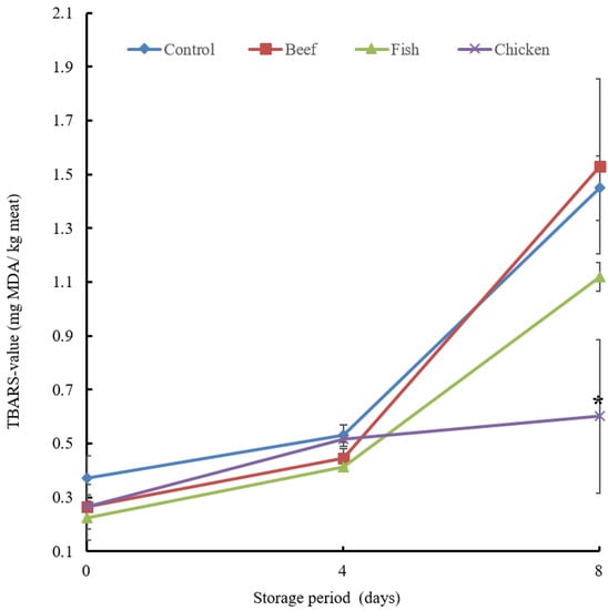 3.4. Preservative Effect of Beef, Fish and Chicken Hydrolysates
