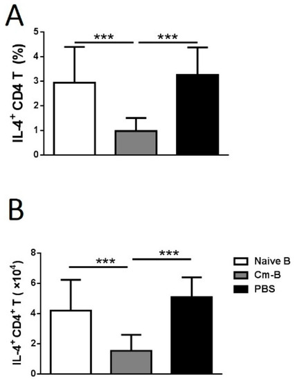 3.2. Cm-B Cells Alter the Pattern of Cytokine Response and Immunoglobin Production Induced by Allergen