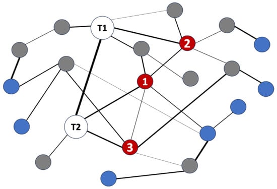 - thyroid hormones—Thyroid hormones were a recurring top-ranked source node. The thyroid gland also express angiotensin-converting enzyme 2 (ACE2), the main protein that functions as a receptor to which SARS-CoV-2 binds to enter host cells. Immune system cells are targets for thyroid hormones and T3 and T4 modulate specific immune responses, including cell-mediated immunity, natural killer cell activity, the antiviral action of interferon and proliferation of T- and B-lymphocytes [89]. Thyroid pathology is a known event during and immediately after COVID-19 infection. There has been numerous established cases of COVID-19 induced pathology [89] ranging from thyrotoxicosis to suppressed thyroid function, which are largely attributed to the “cytokine storm” [90]. However, one study found that the thyroid hormones T3 and T4 are decreased during active COVID-19 infection compared to baseline [91].