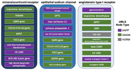 | A1 | Relationships of mineralocorticoid receptor (a RAAS hub node) with COVID-19 | Mineralocorticoid receptor (C0066563); COVID-19 (C5203670) |