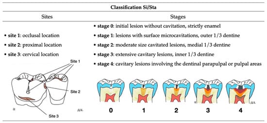 Si/Sta classification describing the different locations (site) and severity (stage) of carious lesions (adapted from [51]).