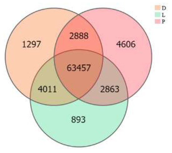 Three replicates were analyzed. The fish were anesthetized using MS-222 (200 mg/L) (Solarbio, Beijing, China) with sample from the same location, cut off on the dorsal skin (D), the lateral skin (L), and the peritoneal wall layer (P) tissues of each fish. The samples were placed in an enzyme-free sterile cryopreservation tube and cooled in a liquid nitrogen tank.