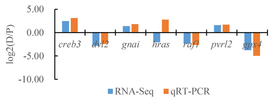 3.7. Confirmation of the DEGs Identified with RNA-Seq by Quantitative Real-Time PCR