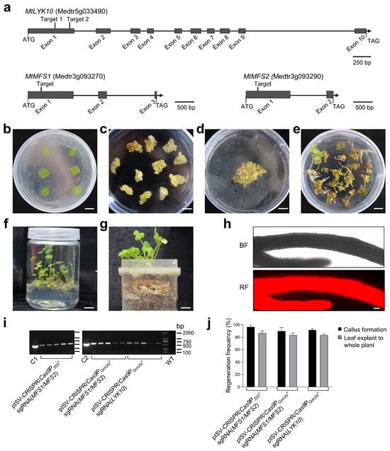 - Zhang, H.; Cao, Y.; Zhang, H.; Xu, Y.; Zhou, C.; Liu, W.; Zhu, R.; Shang, C.; Li, J.; Shen, Z.; et al. Efficient generation of CRISPR/Cas9-mediated homozygous/biallelic Medicago truncatula mutants using a hairy root system. Front. Plant Sci. 2020, 11, 294. [Google Scholar] [CrossRef] [PubMed]