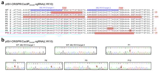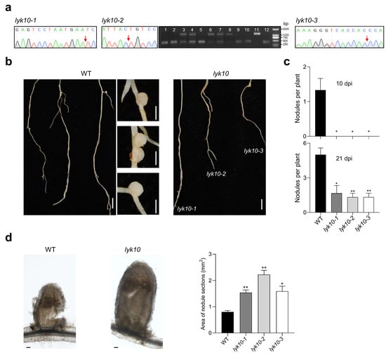 2.10. Analysis of Generated lyk10 Mutant Plants