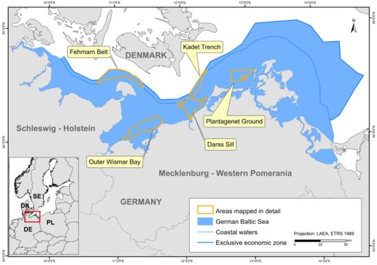 The German Baltic Sea including areas which were mapped in detail (resolution: 50 × 50 m).