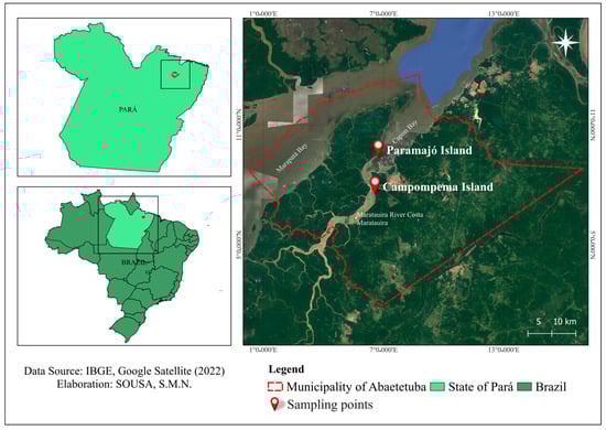 Location map of the sampling areas, Paramajó Island and Campompema Island, in the municipality of Abaetetuba, Pará, Brazil.