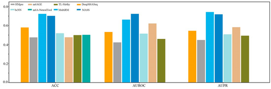 Overall, species-specific deep learning-based methods, such as DeepM6ASeq, MultiRM, and MASS, demonstrate superior predictive performance compared to traditional machine learning methods, such as HMpre, m6AGE, and TL-Methy. In particular, among them, DeepM6ASeq and MASS can predict m6A sites across multiple species.