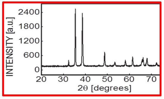 X-ray diffraction pattern of CuO NPs recorded at room temperature in the range 2θ = 20°–70° with a step of 0.02°, speed = 2°min−1 using Cu kα radiation (ʎ = 0.15406 nm).