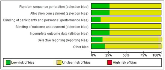 - McGuinness, L.A.; Higgins, J.P.T. Risk-of-bias VISualization (robvis): An R package and Shiny web app for visualizing risk-of-bias assessments. Res. Synth. Methods 2021, 12, 55–61. [Google Scholar] [CrossRef]