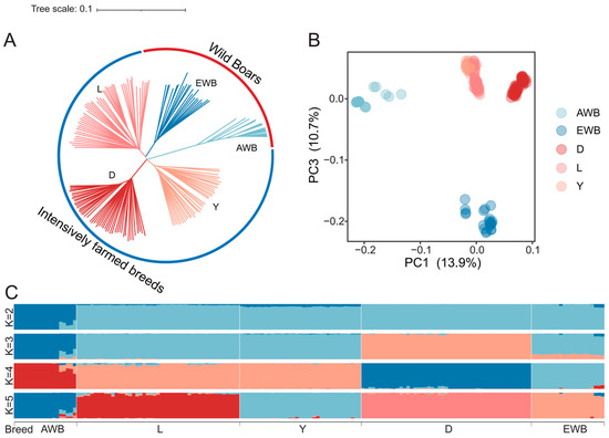- Ramos-Onsins, S.E.; Burgos-Paz, W.; Manunza, A.; Amills, M. Mining the pig genome to investigate the domestication process. Heredity 2014, 113, 471–484. [Google Scholar] [CrossRef]