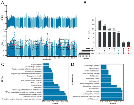 - Szpiech, Z.A.; Hernandez, R.D. selscan: An efficient multithreaded program to perform EHH-based scans for positive selection. Mol. Biol. Evol. 2014, 31, 2824–2827. [Google Scholar] [CrossRef] [PubMed]
