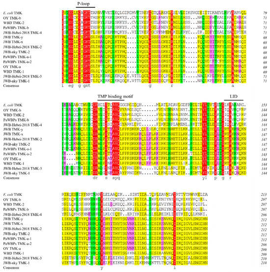 - Li, B.; Ji, L.; Wu, Y.; Hao, X. Isolation, prokaryotic expression and activity analysis of thymidylate kinase (tmk) gene from phytoplasma of wheat blue dwarf. Acta Microbiol. Sin. 2008, 48, 739–744. [Google Scholar] [CrossRef]