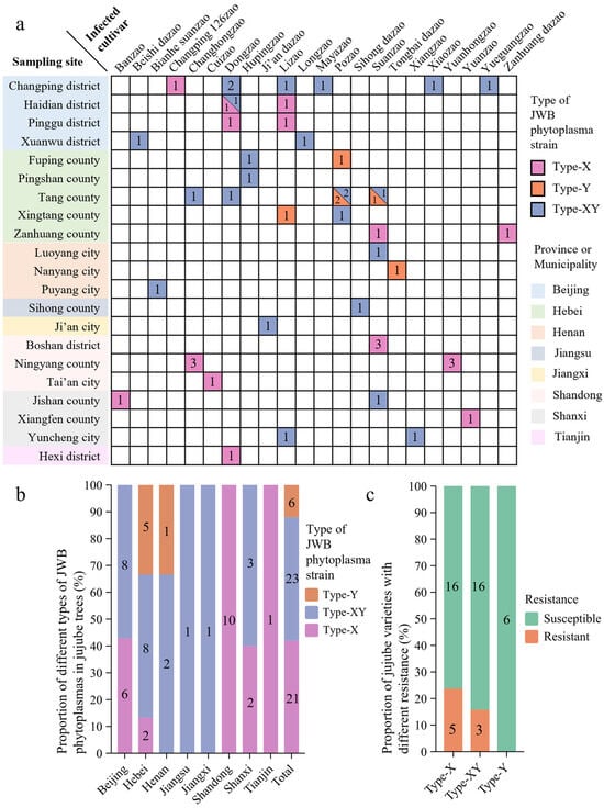- Sun, X.; Mou, H.; Li, T.; Tian, Q.; Zhao, W. Mixed Infection of Two Groups (16SrI & V) of Phytoplasmas in a Single Jujube Tree in China. J. Phytopathol. 2013, 161, 661–665. [Google Scholar] [CrossRef]