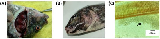 - Benhamed, S.; Guardiola, F.A.; Mars, M.; Esteban, M.Á. Pathogen bacteria adhesion to skin mucus of fishes. Vet. Microbiol. 2014, 171, 1–12. [Google Scholar] [CrossRef] [PubMed]