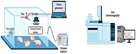 Diagrammatic representation of the experimental configuration for rat exposure to noise and toluene.