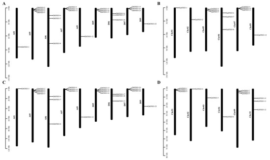 - Hu, Y.; Chen, J.; Fang, L.; Zhang, Z.; Ma, W.; Niu, Y.; Ju, L.; Deng, J.; Zhao, T.; Lian, J.; et al. Gossypium barbadense and Gossypium hirsutum genomes provide insights into the origin and evolution of allotetraploid cotton. Nat. Genet. 2019, 51, 739–748. [Google Scholar] [CrossRef]