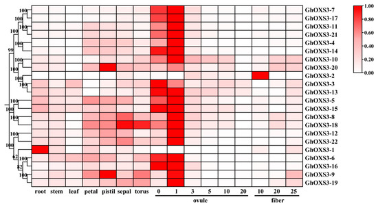 Chen, Y.; Yang, R.; Wang, H.; Xiao, X.; Xing, B.; Li, Y.; Liu, Q.; Lu, Q.; Peng, R.; Chen, G.; et al. Genome-Wide Identification of the Oxidative Stress 3 (OXS3) Gene Family and Analysis of Its Expression Pattern During Ovule Development and Under Abiotic Stress in Cotton. Biology 2024, 13, 903. https://doi.org/10.3390/biology13110903