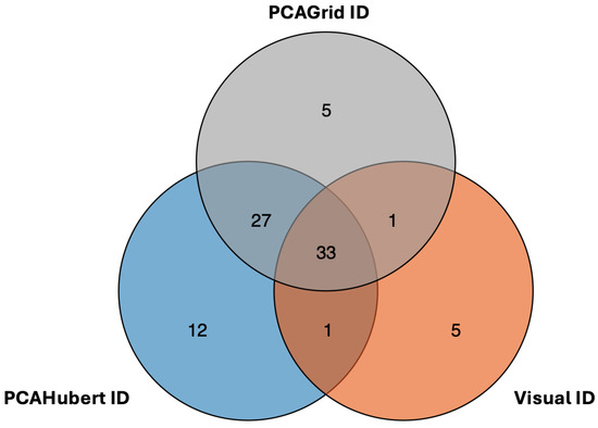 The PCAGrid method was chosen for outlier removal due to its robust statistical approach and comprehensive detection capabilities. It effectively identified samples that deviated significantly from others in their treatment groups, based on statistically determined cutoff values on the outlier map. In contrast, PCAHubert failed to identify one sample that was clearly a visual outlier on the MDS plot, which may indicate limitations in sensitivity. PCAGrid demonstrated superior sensitivity in detecting samples that could disproportionately influence the results. Removing these outliers resulted in a significant reduction in the number of DEGs, indicating that PCAGrid helps reveal true biological effects by minimizing noise. The consistent identification of 33 DEGs across multiple methods underscores their robustness as true detections, validating PCAGrid’s ability to capture genuine biological differences. While methods like rPCA and PCAHubert have specific sensitivities, PCAGrid was selected to balance between sensitivity and specificity. Additionally, PCAGrid successfully identified both outlier samples that were previously detected through visual inspection. Consequently, the five samples identified by the PCAGrid algorithm were excluded from the subsequent comparisons.