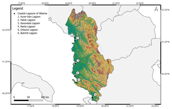 In this investigation, 6 coastal lagoons of Albania were selected as follows: Kune-Vain Lagoon, Patok Lagoon, Karavasta Lagoon, Narta Lagoon, Orikumi Lagoon, and Butrinti Lagoon (Figure 1).
