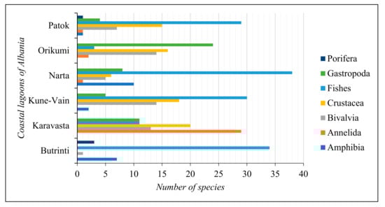 Number of species per taxonomic group in the coastal lagoons of Albania.