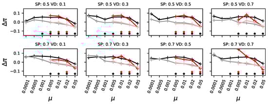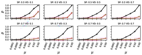 Figure 9, red and pale red lines). Interestingly, when mutation rates are extremely high (