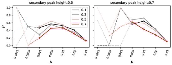 Figure 7). The results, when testing different mutation rates, valley depths, or heights of the secondary peak, further support our hypothesis (see