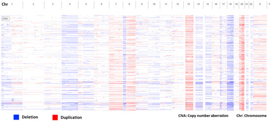 CIN analysis using array comparative genomic hybridization (aCGH) is a valuable tool for the characterization of the tumor’s molecular profile, contributing to the detection of recurrent chromosomal alterations that can influence patient diagnosis and prognosis [18].