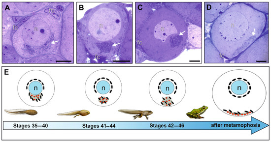 - Ogielska, M.; Bartmańska, J. Oogenesis and Female Reproductive System in Amphibia—Anura. In Reproduction of Amphibians; Ogielska, M., Ed.; Science Publishers: Enfield, NH, USA; Jersey, UK; Plymouth, MA, USA, 2009; pp. 153–272. [Google Scholar]