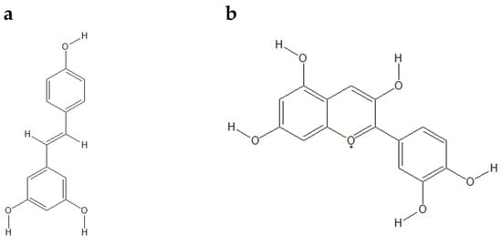 Cyanidin, known scientifically as 3,5,7,3′,4′-pentahydroxyflavilium, 2-(3,4-dihydroxyphenyl)-3,5,7-trihydroxy-1-benzopyrylium, is a naturally occurring organic compound that falls under the categories of both flavonoids and anthocyanins. It serves as a pigment and is commonly found in a variety of fruits including blackberries, raspberries, grapes, cherries, blueberries, and even purple corn. Additionally, cyanidin can be found in fruits like apples and plums. The highest concentrations of this compound are typically found in the fruit peel [8]. Resveratrol, chemically known as 3,5,4′-trihydroxystilbene, belongs to the class of stilbenoids, which are natural phenolic compounds. It is classified as a phytoalexin, naturally synthesized by different plants, particularly in the skin of grapes, blueberries, raspberries, and blackberries [9].