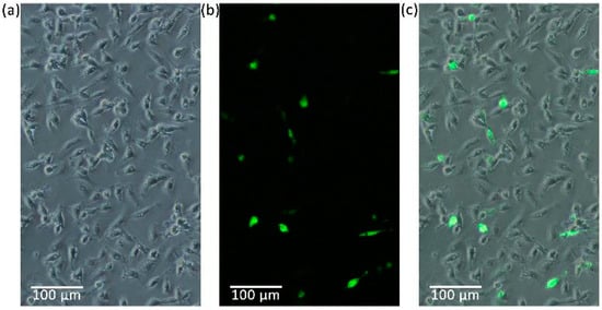 Green fluorescent signals were first detected at 24 h following transfection and lasted for at least 96 h. At 48 h post-transfection, the transfection efficiency of pEGFP-N1 was measured to be about 10% (Figure 7).