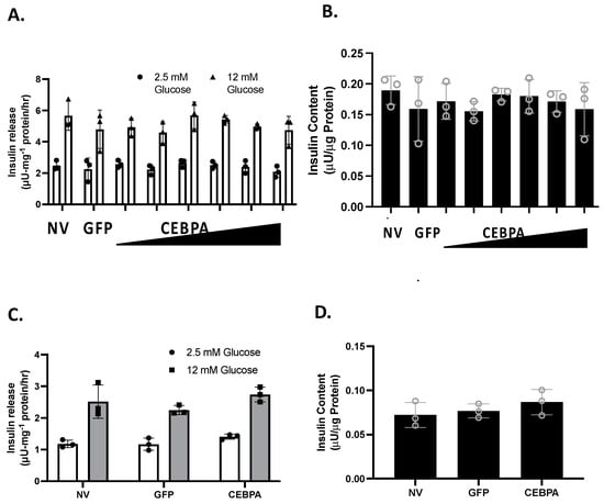 3.3. CEBPA Overexpression Does Not Alter Glucose-Stimulated Insulin Secretion or Insulin Content