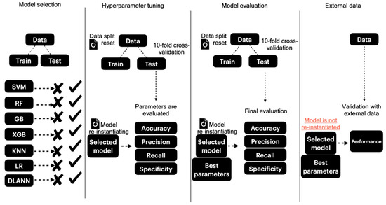 In Figure 1, we describe the classification rationale of PoxiPred, consisting of three independent stages, i.e., model selection, hyperparameter tuning, and model evaluation.