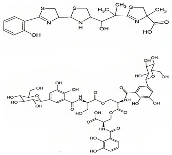 - Raymond, K.N.; Dertz, E.A.; Kim, S.S. Enterobactin: An archetype for microbial iron transport. Proc. Natl. Acad. Sci. USA 2003, 100, 3584–3588. [Google Scholar] [CrossRef] [PubMed]