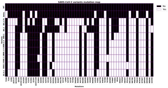 The Omicron XBB variant [18,19] is a subvariant of the Omicron variant BA.2.75, which was first identified in South Africa (December 2022) and has been detected in other countries, including the United States, Canada, and the United Kingdom. The XBB variant is believed to be more transmissible than the original Omicron variant, as well as more likely to evade the immune response from previous infection or vaccination. It has 32 mutations, including 10 mutations in the spike protein. Figure 2 reports a summary of the mutations limited to spike. It may be more likely to crossover the immune response for previous infections or vaccinations [20].