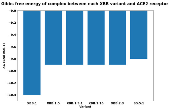 Gibbs free energy G to quantify the binding affinity of each XBB variant with the ACE2 receptor.