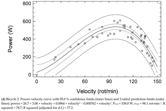 Example of power–velocity curves of tests performed with two bicycles is shown in Figure 2.
