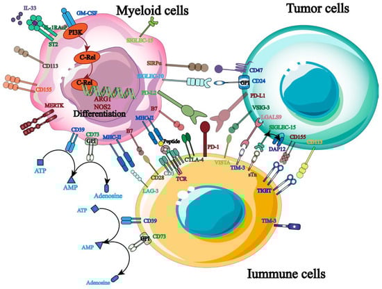 The primary strategy for shielding host cells from foreign antigen harm is to maintain a balance of immunological signals, as immune targets are essential for immune homeostasis and host survival. Currently, hematological malignancies and solid tumors are frequently treated with ICB, and a growing number of targets for tumor immunotherapy have been identified (Figure 3). More crucially, studies have shown that the balance between the inhibitory and activated receptors on the surface of natural killer cells (NK cells) governs their immunological function. Tumor cells will be encouraged to evade the immune system when the inhibitory signal is higher than the activation signal. Therefore, by identifying and obstructing relevant inhibitory signals, NK cells’ anti-tumor immune response can be enhanced. PD-1, TIGIT, and others are the most commonly employed inhibitory targets.