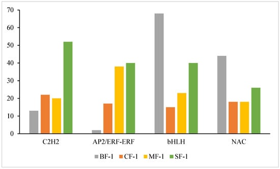 Amounts of transcription factors C2H2, AP2/ERF-ERF, bHLH, and NAC in CMD.
