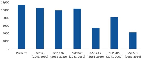 Due to the absence of previous studies of the species distribution across its entire range, formulating comprehensive conclusions regarding its responses to various climatic and anthropogenic factors proves challenging. Enhancing our comprehension of the synergistic impacts of climate change and land cover will offer deeper insights into the varying levels of susceptibility exhibited by different species to climate change. The alterations in climate are anticipated to exert significant influences on species ecology and distribution, leading to pronounced effects on terrestrial biodiversity [2,26,27,28]. While climate naturally undergoes changes, recent land cover changes have accelerated this process, raising concerns [2]. Moreover, acquiring knowledge about both the present and anticipated future conditions of habitats is imperative for effective conservation and management planning. Future climate change is expected to exert substantial effects on species’ niches, representing the biotic and abiotic conditions necessary for species persistence. Species are projected to respond by adapting their bioclimatic niche, migrating to suitable habitats to maintain their existing niche, or experiencing range limitations and subsequent declines in population, potentially leading to local or global extinctions under future scenarios [29,30]. The multitude of factors contributing to habitat loss may encompass diverse external influences prevalent in previous periods [31].