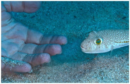 In general, L. sceleratus shies away from humans, as confirmed across the region by spearfishers, divers and scientists. Torquigener hypselongeion, on the other hand, with its very “cute” appearance (small and toy-like), should not be attempted to be touched by people while underwater. It can easily get accustomed to swimmers and divers, as presented in this study (Figure 5).
