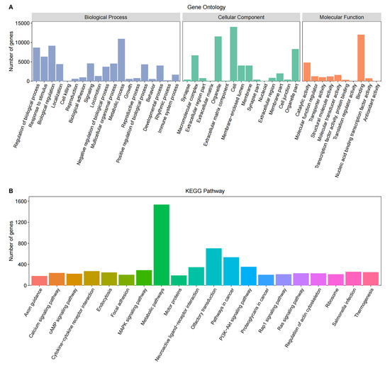 - Tang, J.; Ouyang, H.; Chen, X.; Jiang, D.; Tian, Y.; Huang, Y.; Shen, X. Comparative Transcriptome Analyses of Leg Muscle during Early Growth between Geese (Anser cygnoides) Breeds Differing in Body Size Characteristics. Genes 2023, 14, 1048. [Google Scholar] [CrossRef] [PubMed]